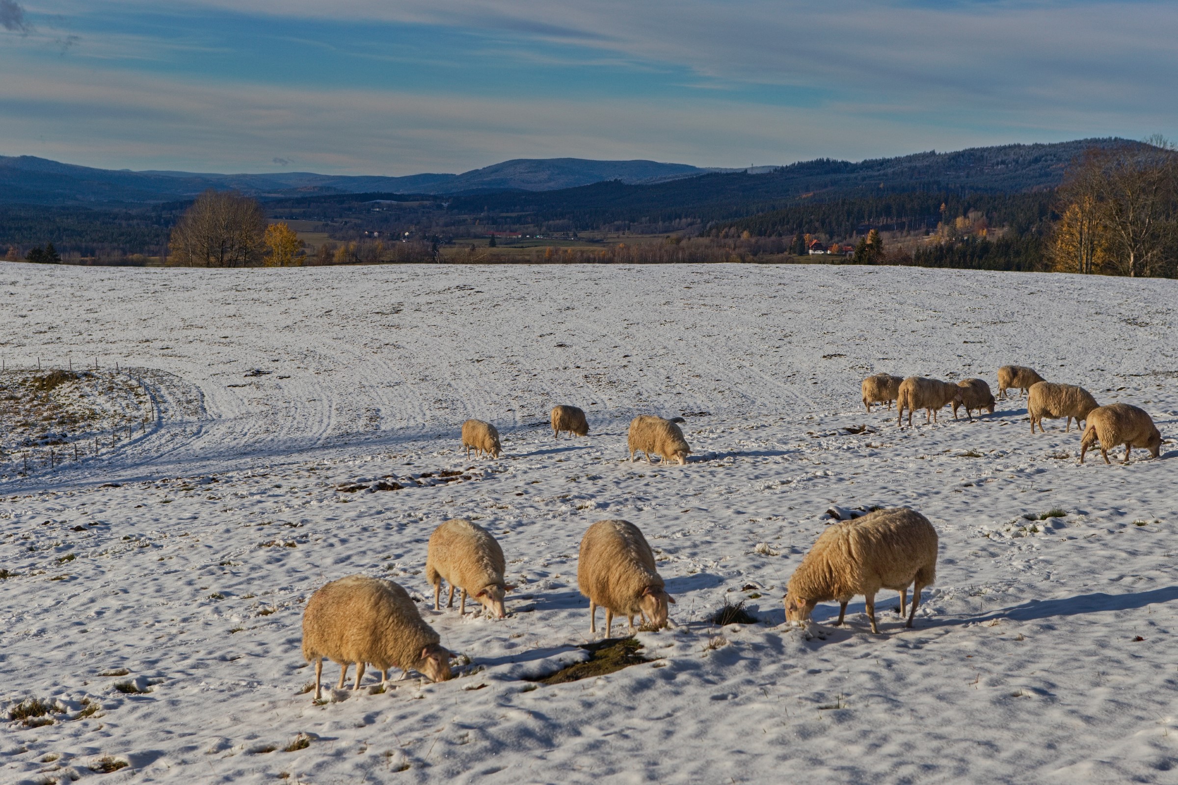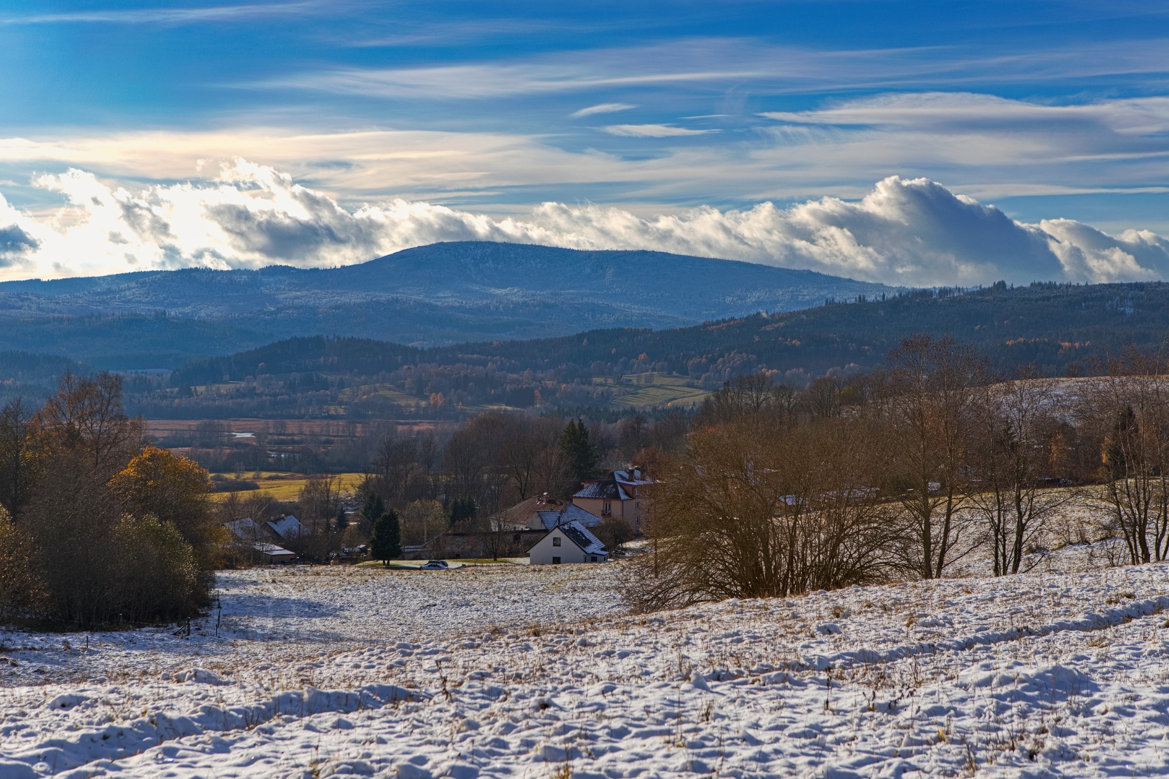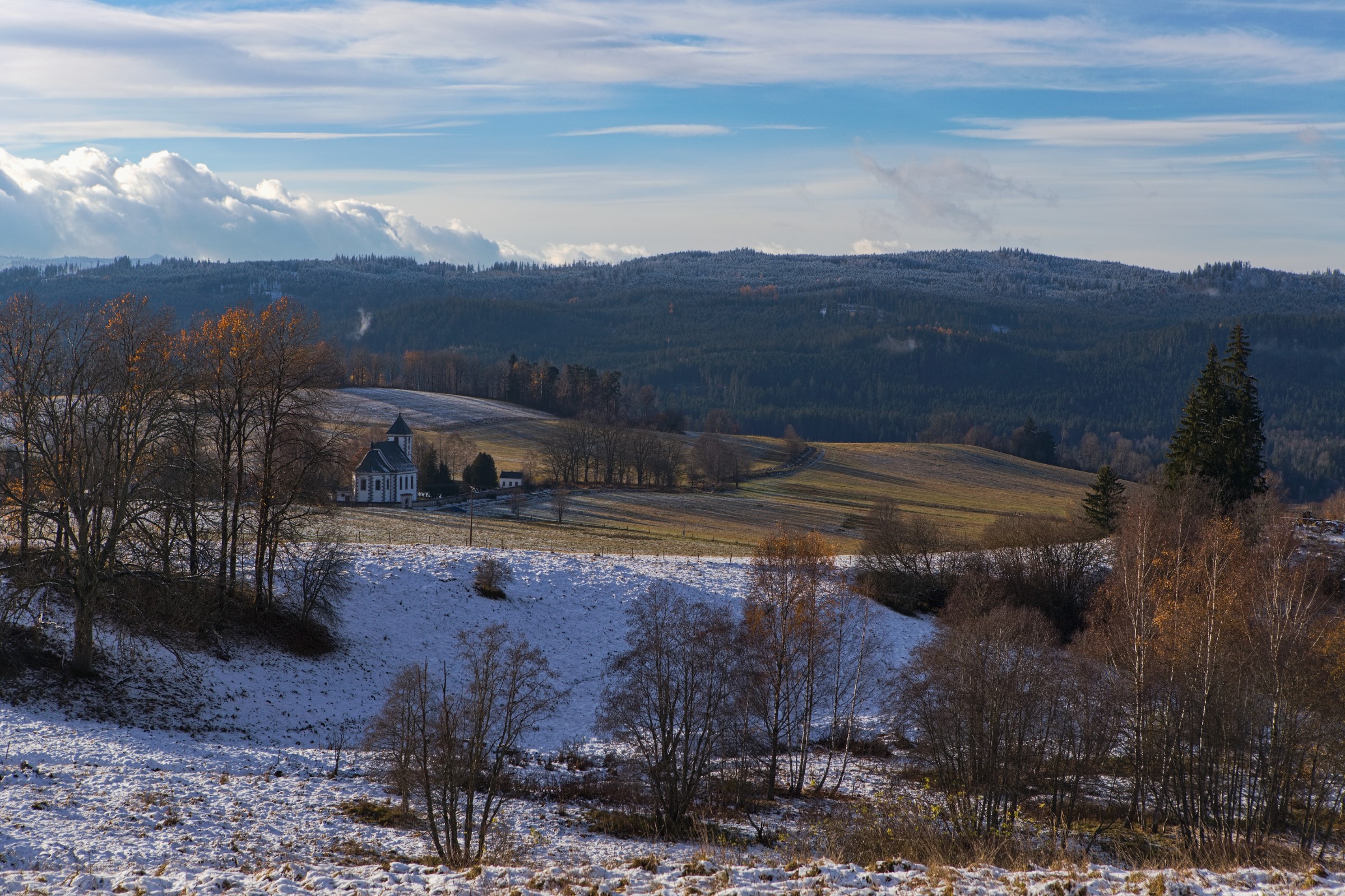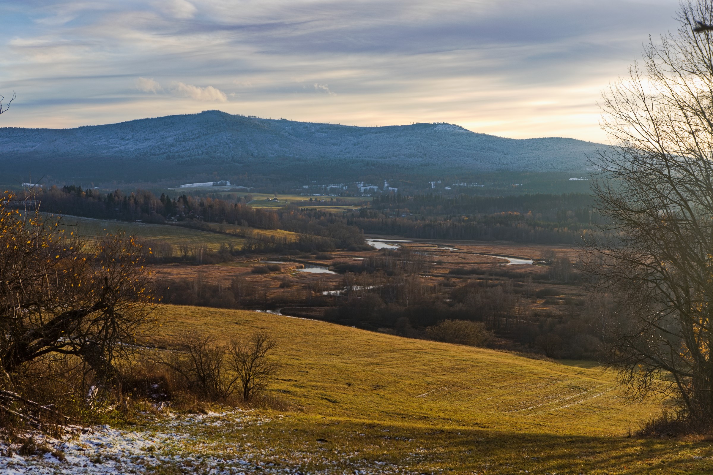 Teploty se i přes ochlazení drží v druhé listopadové dekádě mírně nad průměrem. Většina dosavadních listopadových srážek (podrobněji jsme informovali v aktualitě: Za polovinu listopadu více srážek než v září a říjnu dohromady) spadla v polohách pod 1000 m zatím ve formě deště. Pouze nejvyšší polohy zaznamenaly v listopadu zatím převahu sněhových srážek, ale díky oblevám sníh většinou rychle roztál. 17. listopadu, kdy byly pořízeny naše snímky, byla sněžná čára po ránu kolem 750 m, během dne se posunula nad 800 m. My jsme se s fotoaparátem vypravili právě do těchto poloh a zdokumentovali okolí Želnavy, Slunečné a meandrů Vltavy nad Lipnem. Sněhová pokrývka slabě přibývala s každým výškovým metrem. V místech, kam se nedostaly sluneční paprsky, byl sníh prachový, na jižních svazích mokrý a tající. V lesích sníh ležel jen lokálně podle hustoty porostu. Pod hranicí 800 metrů ležely jen zbytky rozbředlého sněhu. Prostě něco mezi podzimem a zimou.