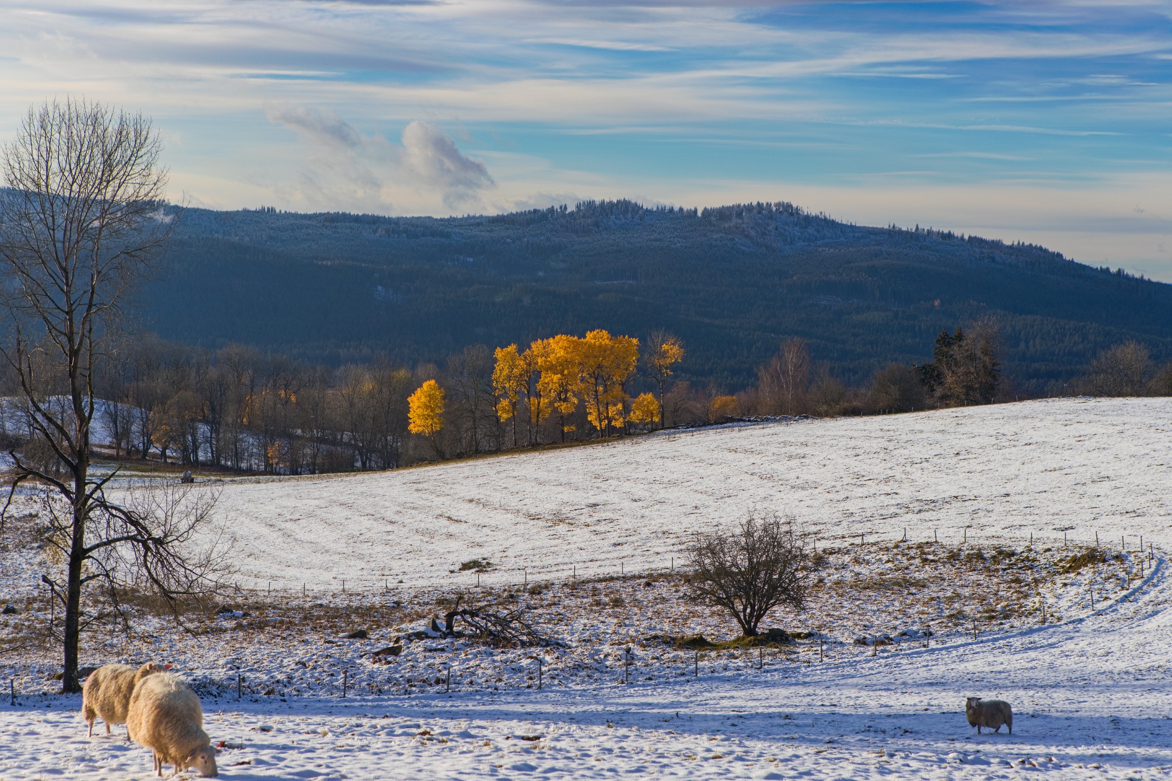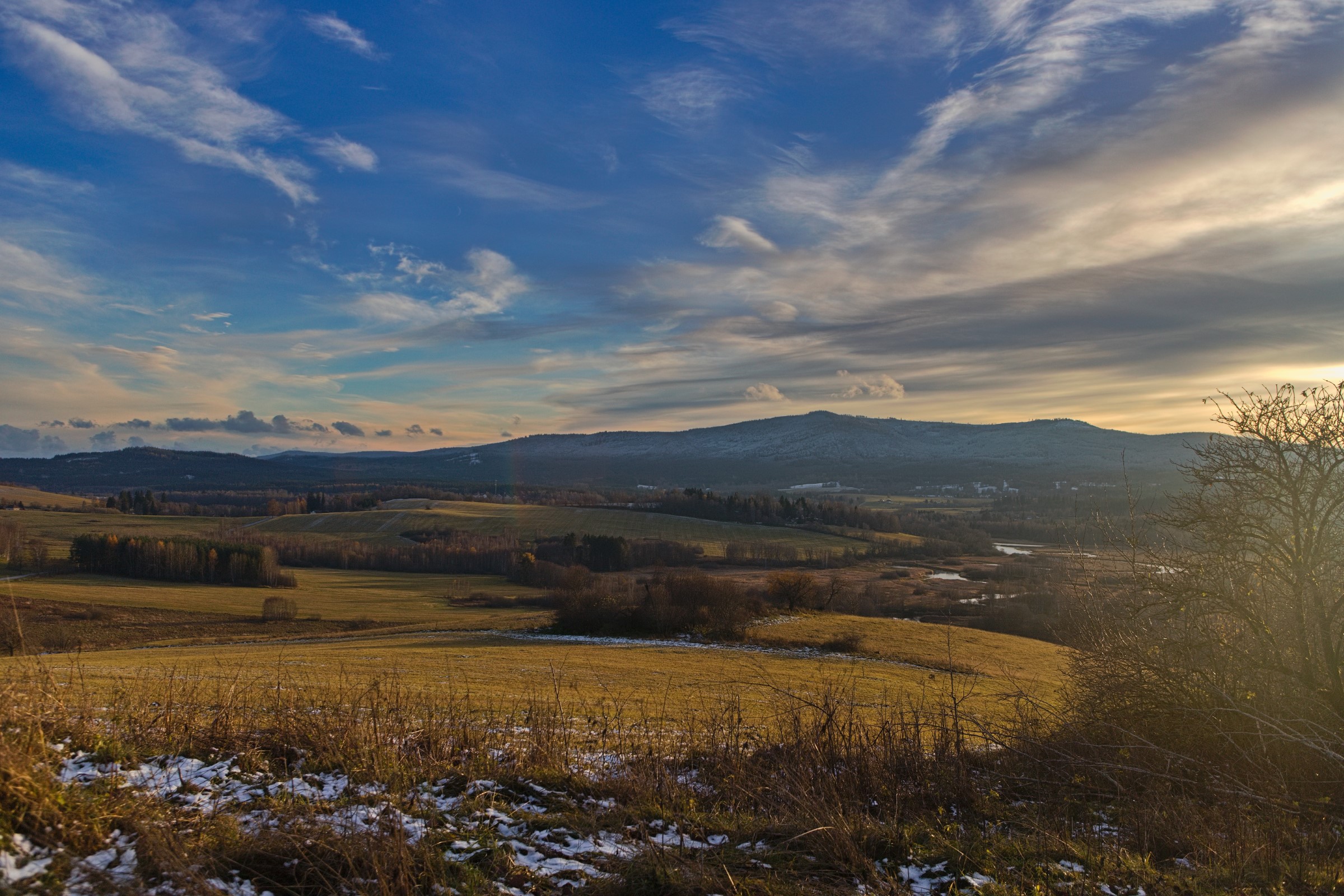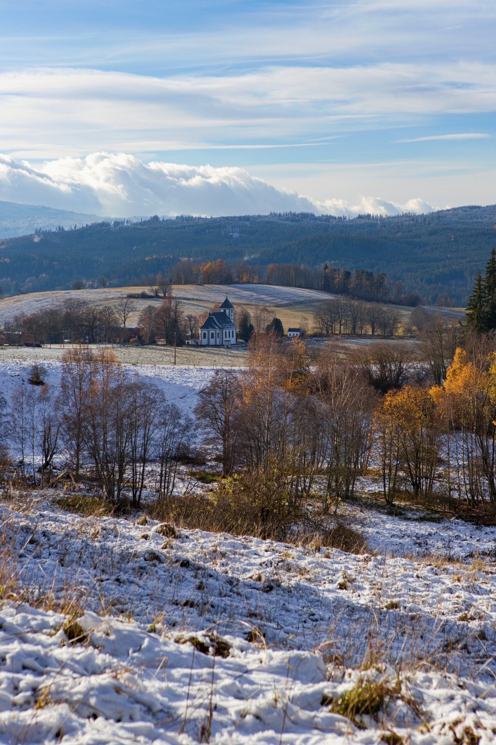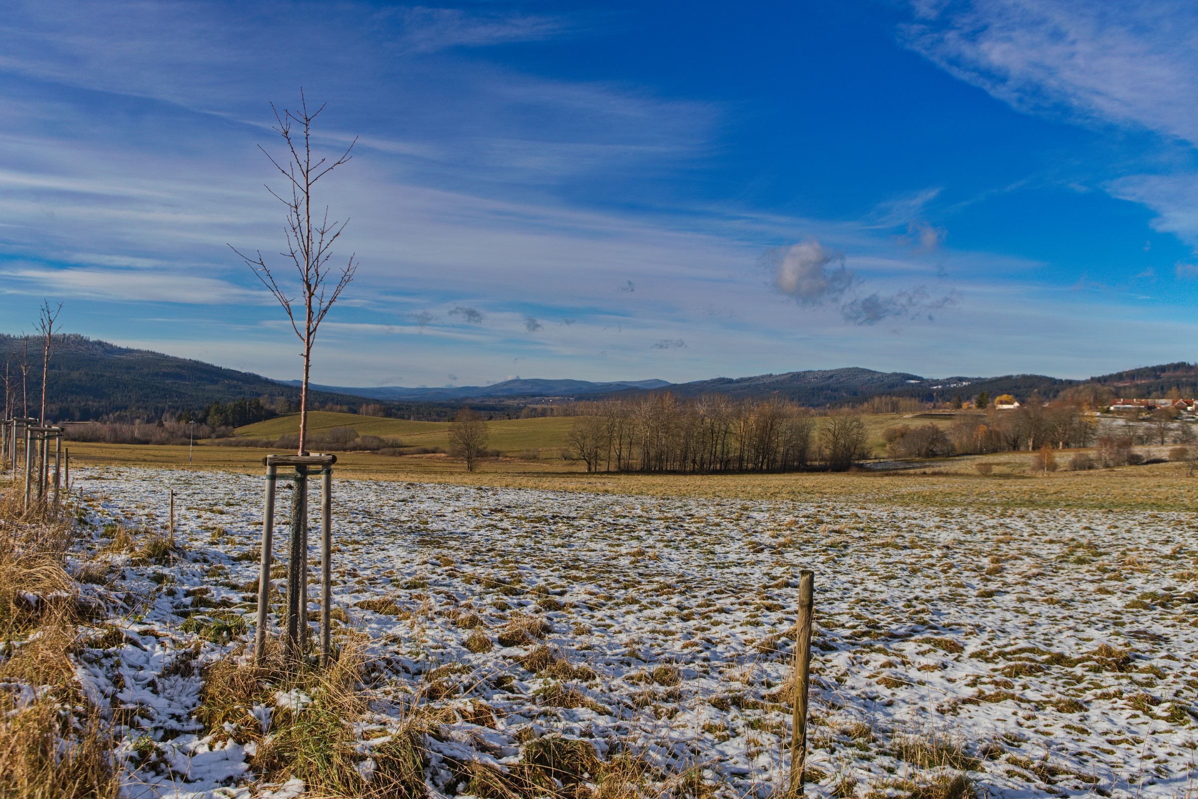 Teploty se i přes ochlazení drží v druhé listopadové dekádě mírně nad průměrem. Většina dosavadních listopadových srážek (podrobněji jsme informovali v aktualitě: Za polovinu listopadu více srážek než v září a říjnu dohromady) spadla v polohách pod 1000 m zatím ve formě deště. Pouze nejvyšší polohy zaznamenaly v listopadu zatím převahu sněhových srážek, ale díky oblevám sníh většinou rychle roztál. 17. listopadu, kdy byly pořízeny naše snímky, byla sněžná čára po ránu kolem 750 m, během dne se posunula nad 800 m. My jsme se s fotoaparátem vypravili právě do těchto poloh a zdokumentovali okolí Želnavy, Slunečné a meandrů Vltavy nad Lipnem. Sněhová pokrývka slabě přibývala s každým výškovým metrem. V místech, kam se nedostaly sluneční paprsky, byl sníh prachový, na jižních svazích mokrý a tající. V lesích sníh ležel jen lokálně podle hustoty porostu. Pod hranicí 800 metrů ležely jen zbytky rozbředlého sněhu. Prostě něco mezi podzimem a zimou.