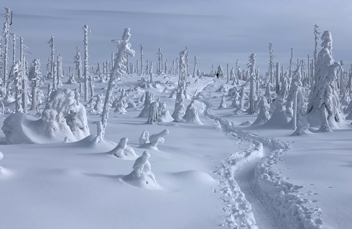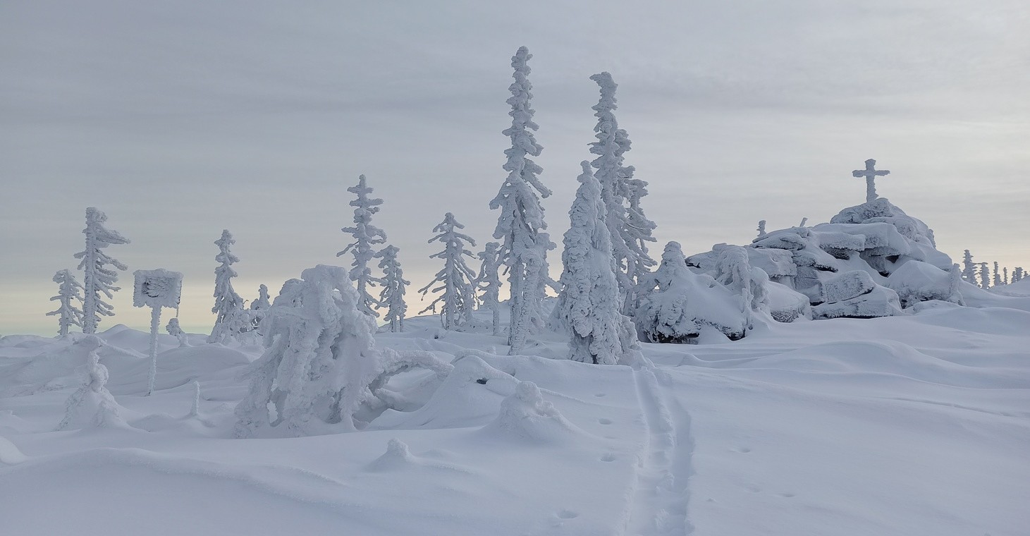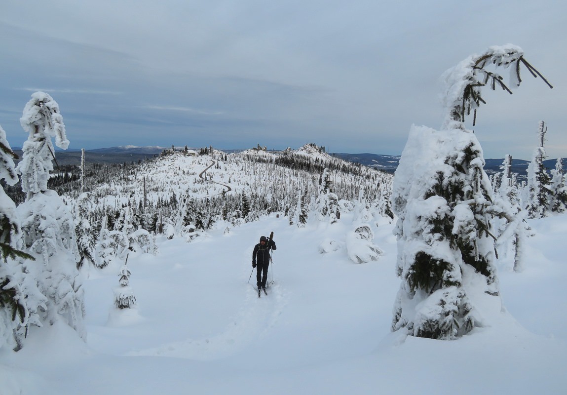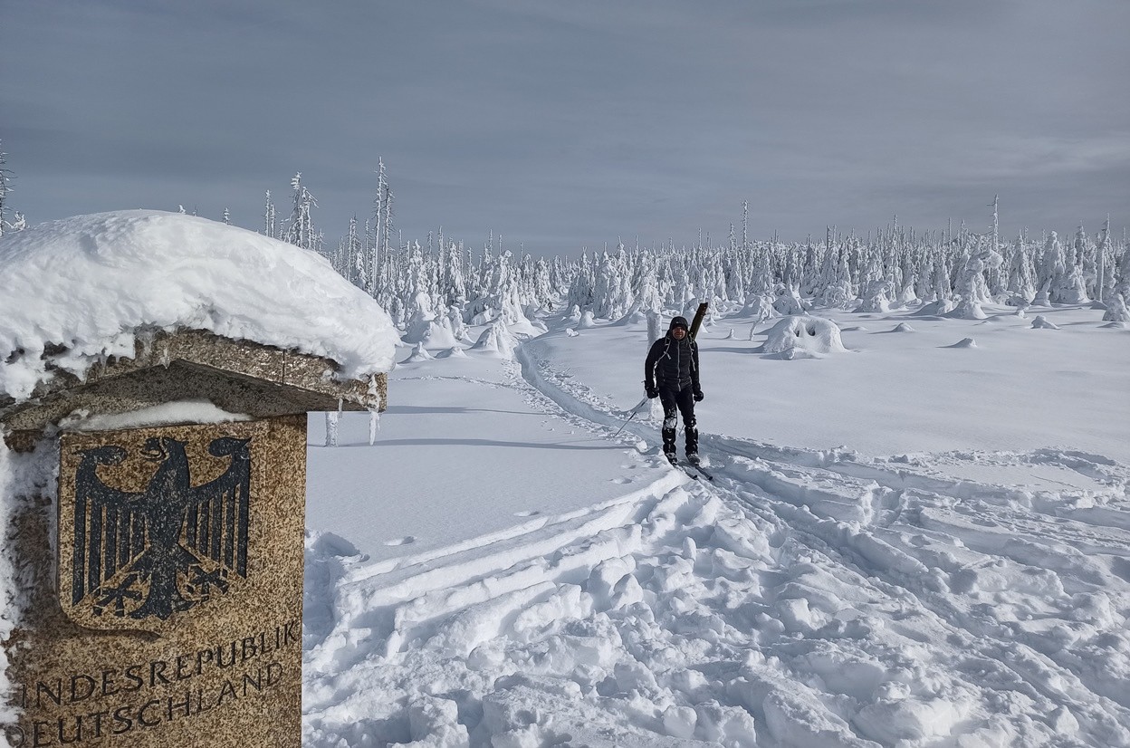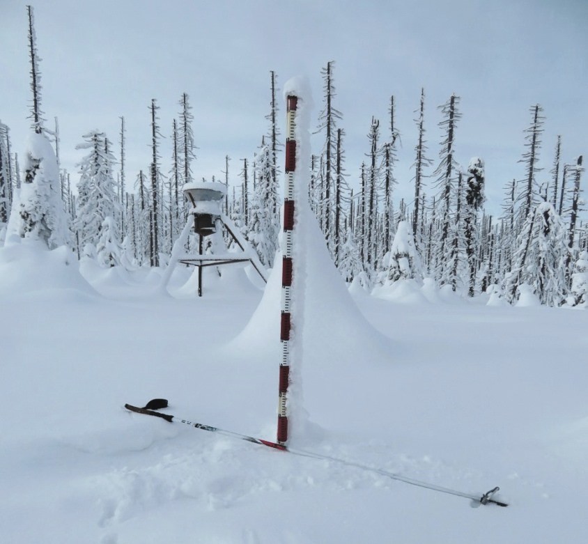 Počátkem prosince se na Šumavě výrazně vylepšily sněhové podmínky, někde dokonce i rekordně, jak jsme informovali v příspěvcích na našem webu (Šumava 2. prosince pod rekordním sněhem a Ve Volarech leží 60 cm sněhu, nejvíce za 17 let). Pokud jde o výšku sněhové pokrývky, snažíme se díky široké spolupráci shromažďovat tyto informace z celé Šumavy a zveřejňovat minimálně jednou týdně před víkendem v pravidelných reportech (Sněhový servis na webu Meteo-Šumava). Denně jsou pak také data o výšce sněhu z některých našich a dalších šumavských stanic k dispozici na webové stránce HPPS ČHMÚ. K monitoringu sněhu patří kromě měření výšky sněhové pokrývky i měření jejích vlastností. Na většině klimatologických a srážkoměrných stanicí ČHMÚ se podrobnější měření sněhu provádí každé pondělí. Pro měření mimo tyto stanice a na odlehlých místech zejména v horských oblastech slouží expediční měření. Jedno takové expediční měření jsme naposledy provedli koncem listopadu (blíže v článku Zimní listopadové měření na hřebenu Šumavy). V pátek 8. prosince jsme se vypravili, tentokrát za velmi příznivého počasí, na hřeben Trojmezné zjistit aktuální stav sněhové pokrývky na hraniční stezce mezi Třístoličníkem (Dreisessel) a Plechým.