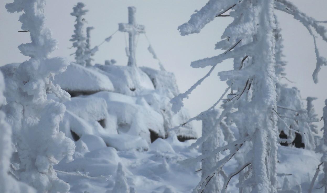 Snímky zimní atmosféry a měření sněhu na hřebenu Trojmezné 8. prosince (foto: JP a AlCapino:)