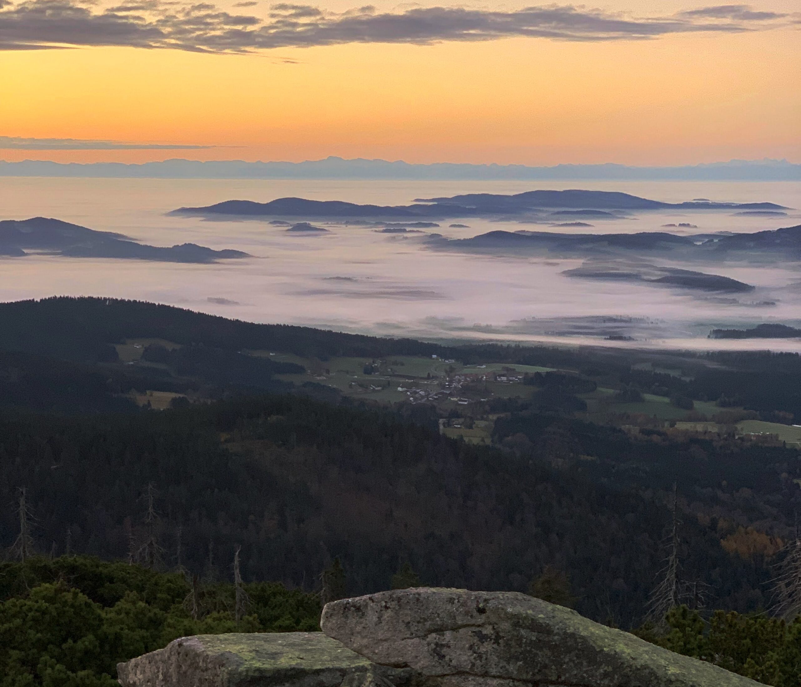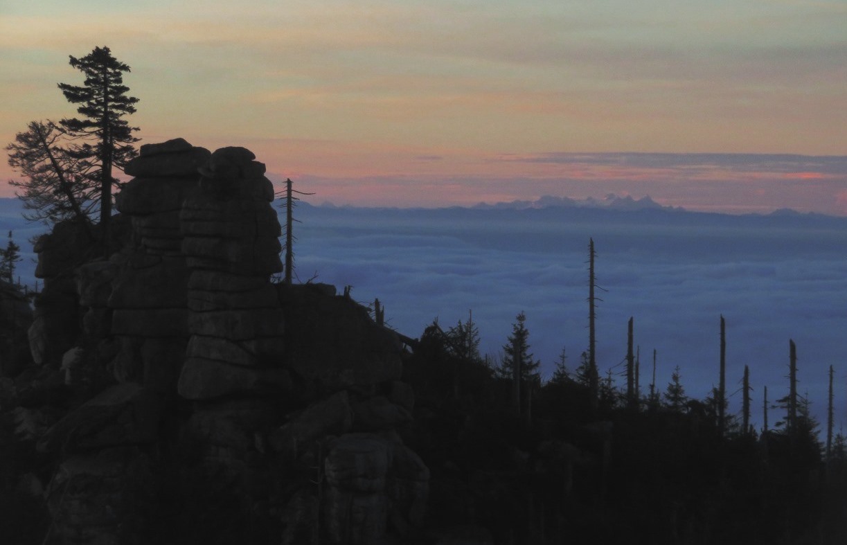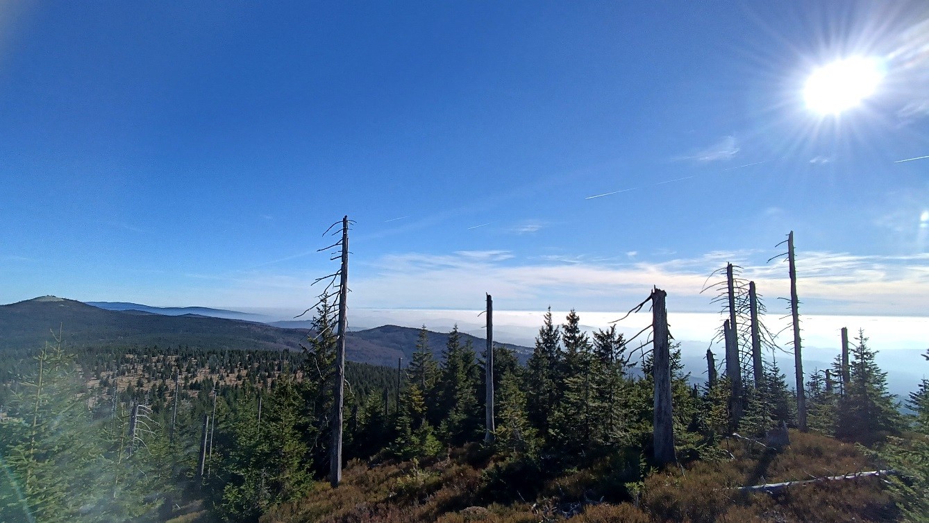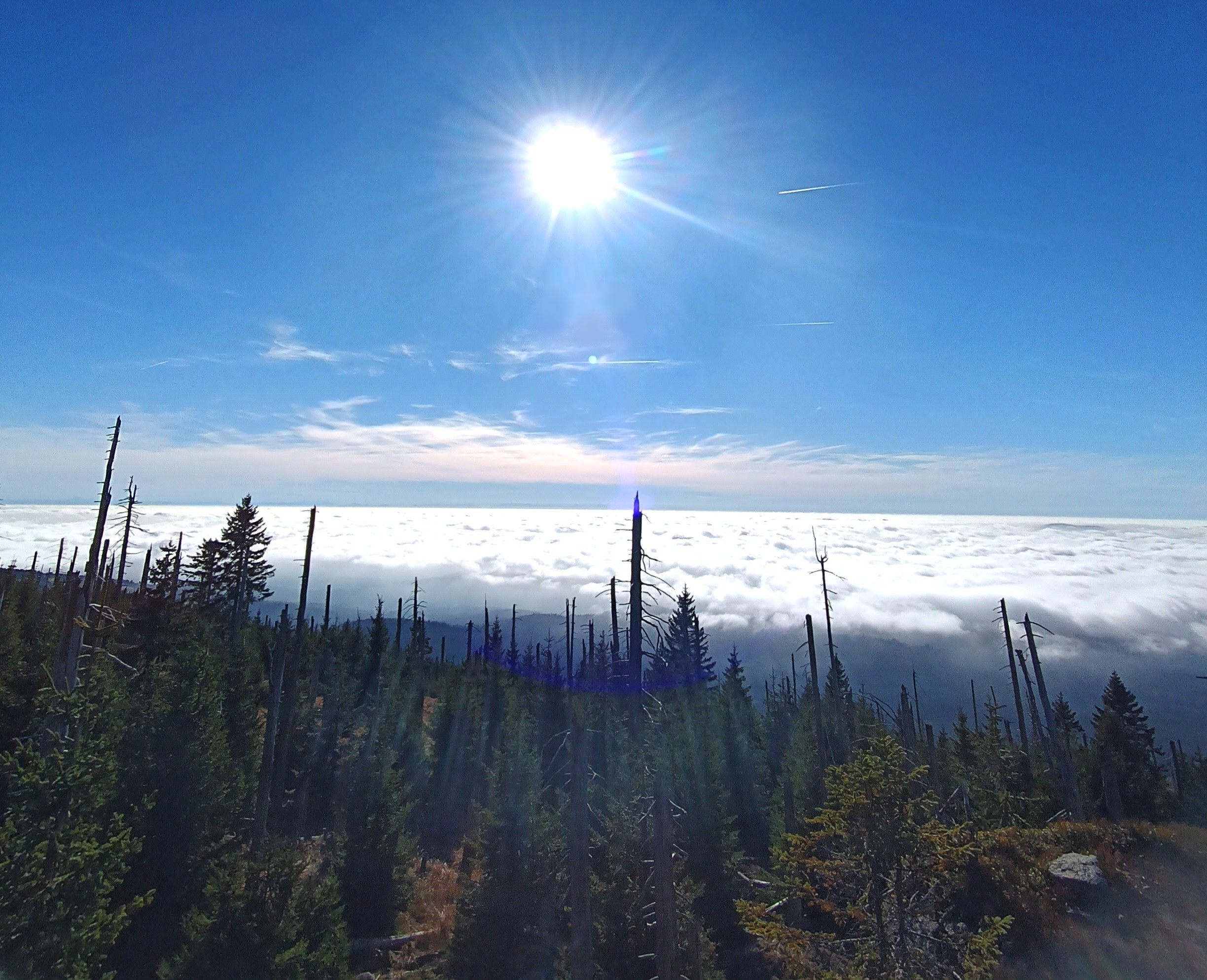 V rámci podzimních expedičních měření, údržby a přípravy meteorologických stanic na zimní sezonu, jsme při této příležitosti měli možnost v posledních dnech díky příznivým podmínkám několikrát zdokumentovat některé šumavské inverze pěkně z nadhledu. Fotografie sice nenahradí skutečnou atmosféru, nicméně pro přiblížení si dovolíme níže prezentovat několik amatérských snímků šumavské inverze z oblasti Třístoličníku, Plechého a Trojmezné, nad Bučinou, z vrcholu Boubína, Blatného vrchu nebo z obou vrcholů Falkensteinu. Letošní velmi teplé slunečné období ve vyšších polohách Šumavy bylo nezvykle dlouhé, přesto jak dokazují i přiložené snímky, je zde každý den jiný.
