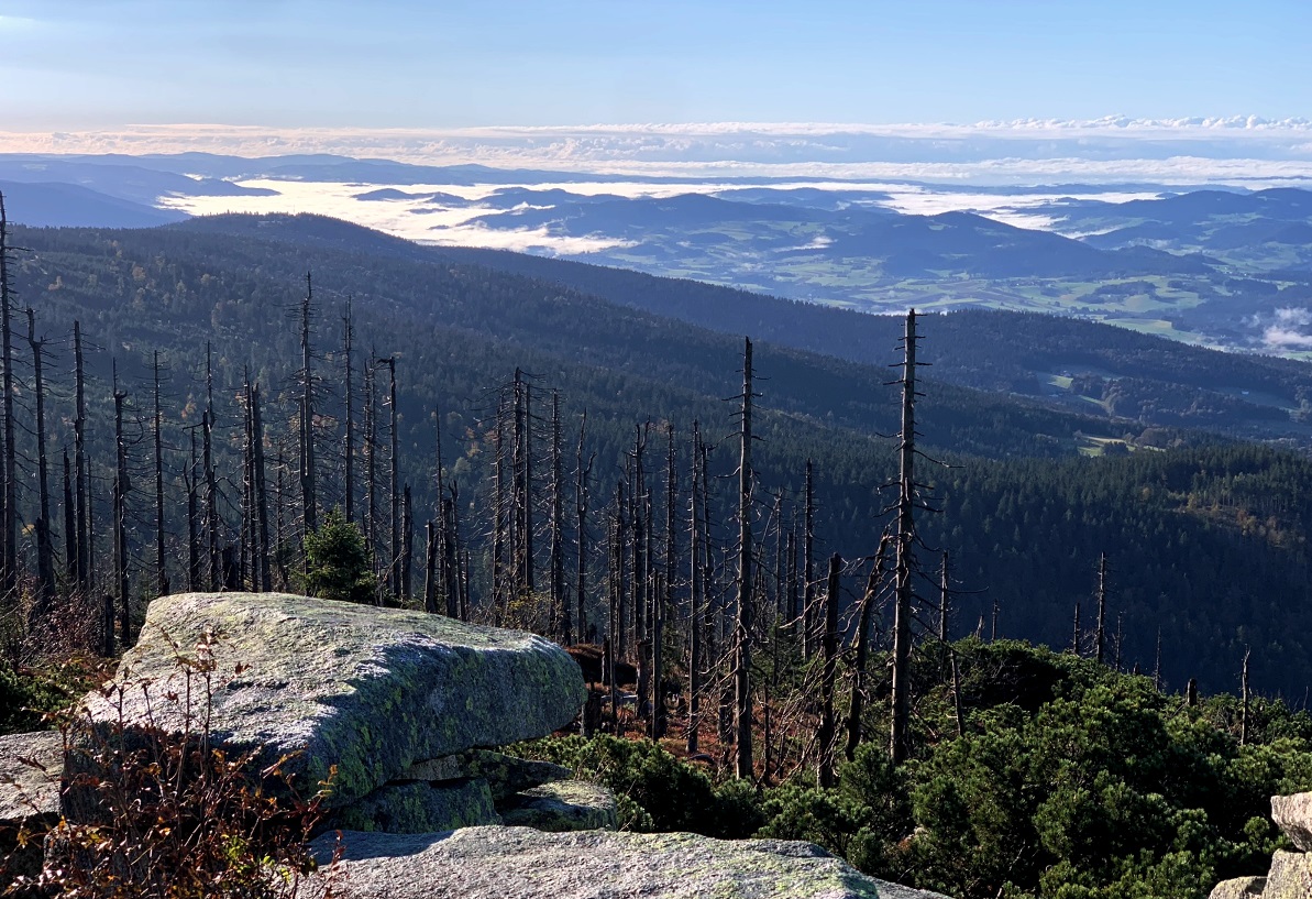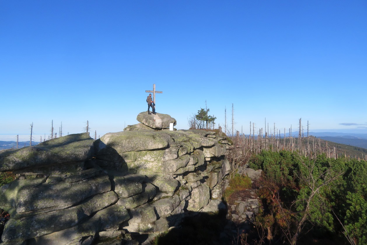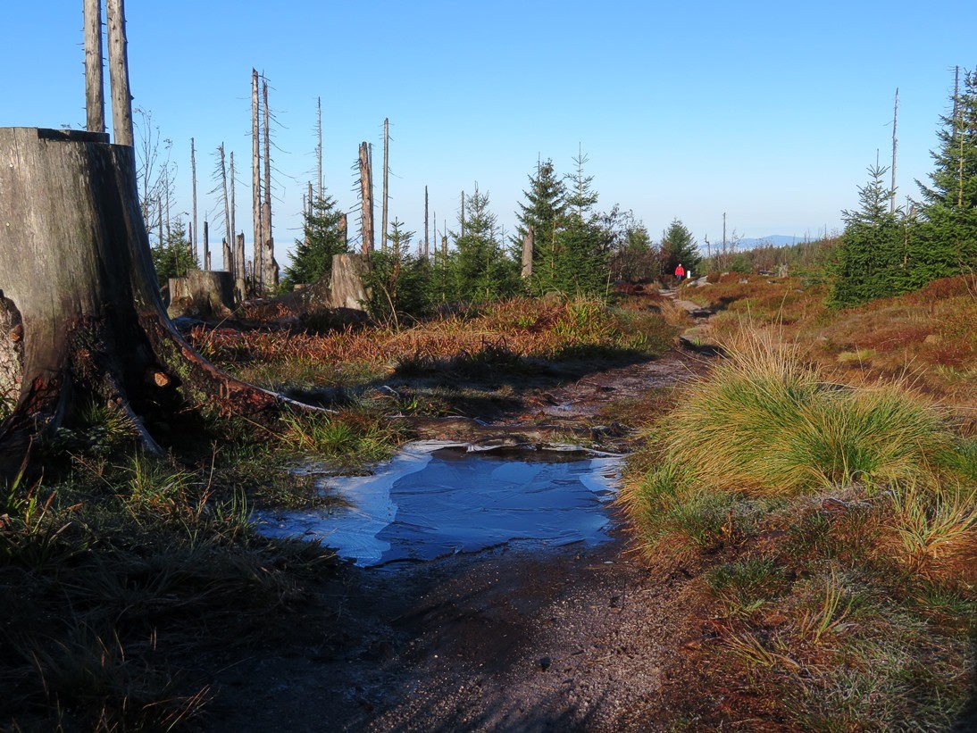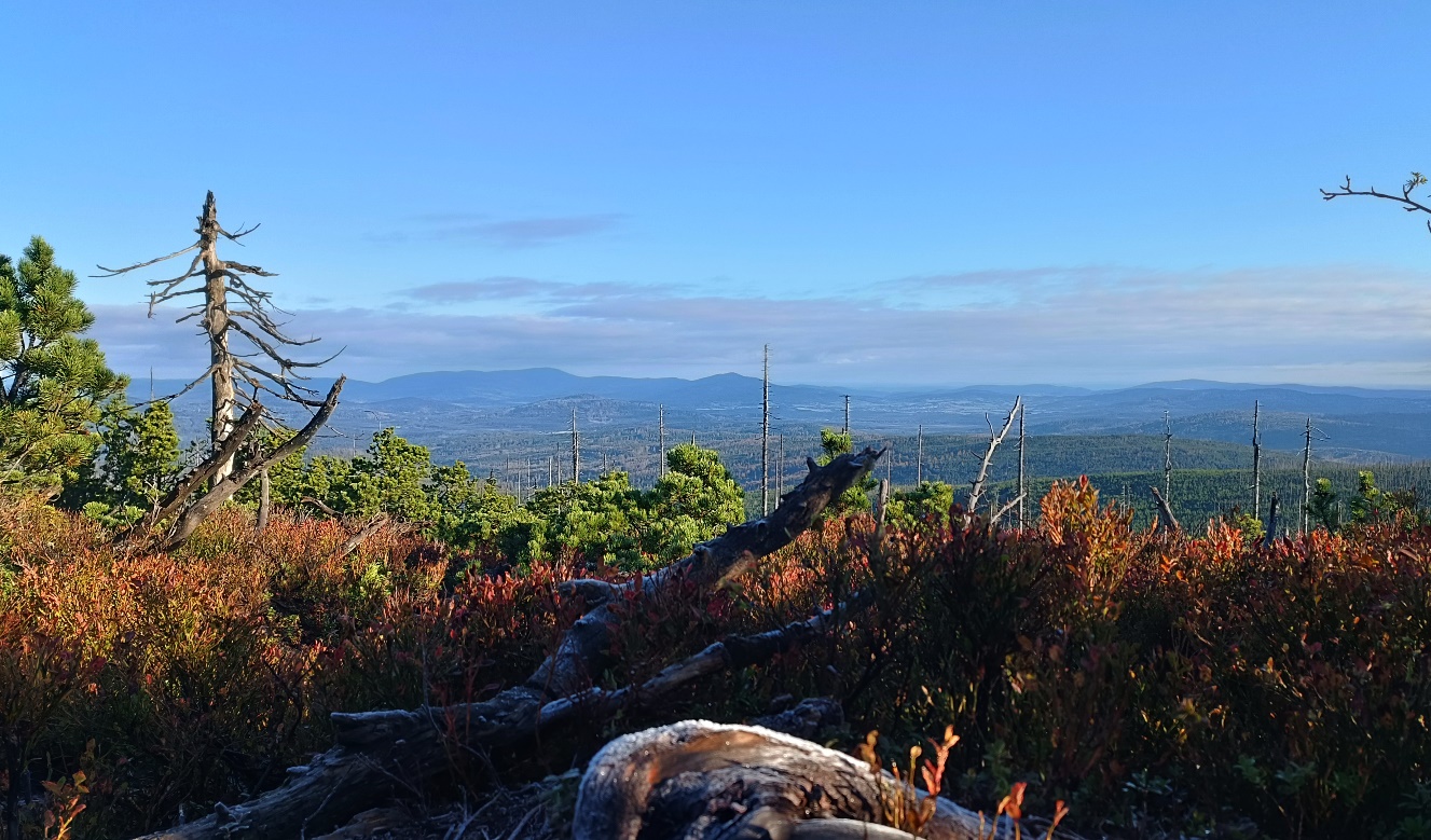 Na hřebenu Šumavy jsme se kromě pořízení několika snímků věnovali i souběžnému měření srážek a přípravě na zimu v podobě instalace sněhoměrných latí. Počasí nám opravdu přálo, přestože bylo chladno, sluneční paprsky a překrásné barvy podzimu nás celou cestu hřály dostatečně. Při návratu jsme pak potkávali nemálo turistů, kteří si na vrcholky Šumavy vyrazili užít krásný podzimní den. Další noc na pondělí může být u nás ještě podobně chladná, ne-li místy i mrazivější, postupně však dojde opět k přibývání oblačnosti a následující dny už by měly být bez mrazu a opět s přeháňkami.