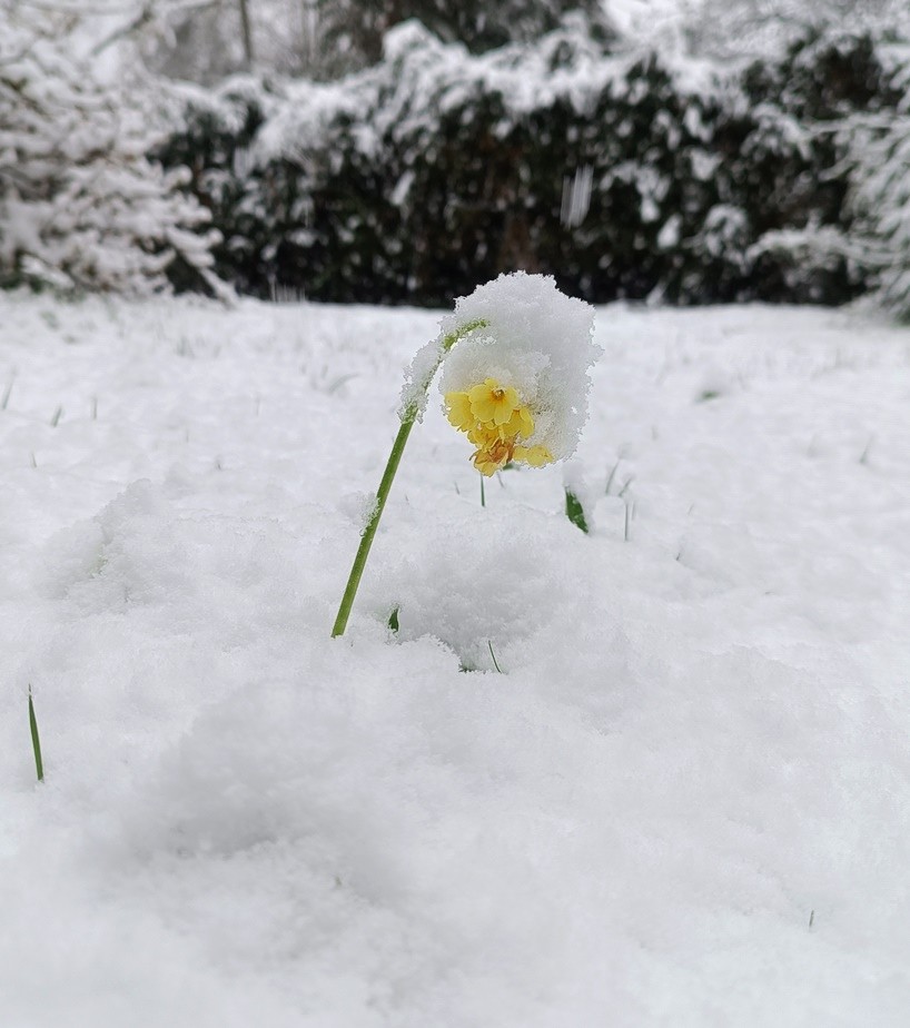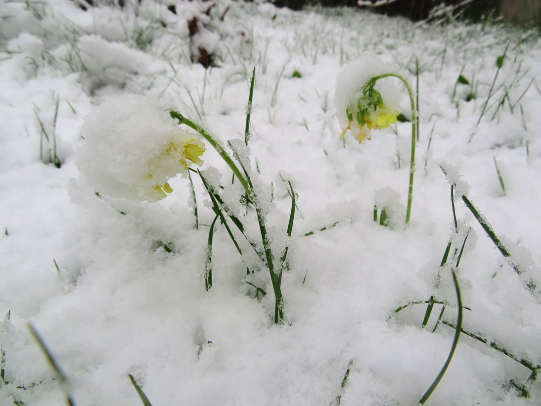 Rozkvetlá Šumava pod sněhem, 18. dubna 2024