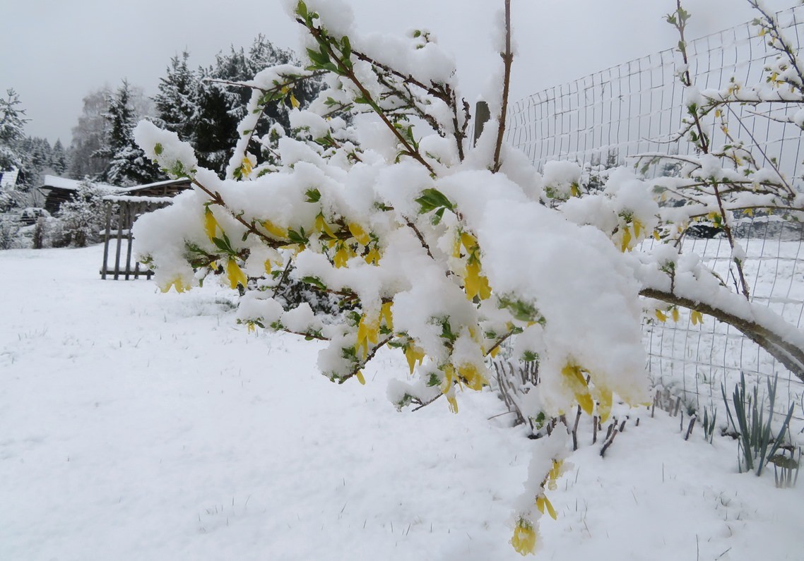 Při déle trvajícím nadprůměrně teplém (velmi často až rekordně) charakteru počasí na konci zimy a polovině jara došlo k výraznému předstihu začátku a průběhu vegetační sezony. Letní dny s maximální teplotou vzduchu 25 °C a více začaly mnohde na Šumavě více jak o měsíc dříve, než bývalo zvykem (více v článku: Letní den přišel letos na Šumavu rekordně brzy). Díky tomu také na Šumavě stačilo do poloviny dubna rozkvést mnoho druhů bylin i stromů, a to včetně ovocných. Načež se prakticky přesně v polovině měsíce dostavilo výrazné ochlazení, které srazilo teplotu vzduchu na podprůměrné hodnoty a do horských poloh přineslo i sníh (více v aktualitě: Na Šumavu se vrátila zima). V dalším přílivu studeného vzduchu od severu se záhy dostavilo sněžení i do vyšších a středních poloh Šumavy, čímž tak vytvořilo již 18. dubna možnost zaznamenat současně kvetoucí i zasněženou přírodu, jak přibližují snímky pod textem.
