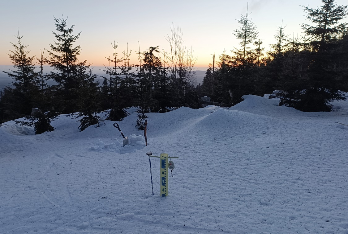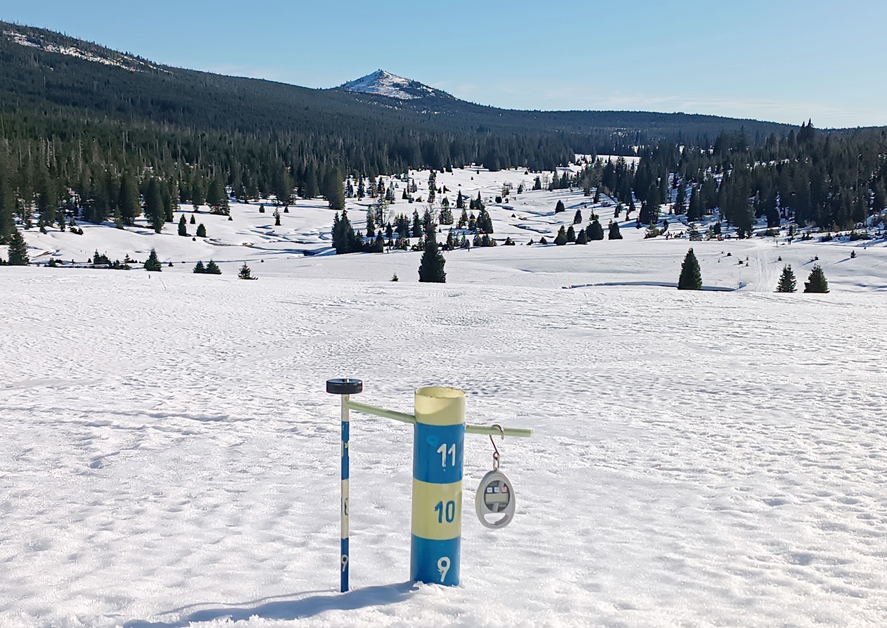 Měření sněhu na konci ledna na Trojmezné, Plechém, Boubíně, Basumu, Almbergu, Modravě a Březníku