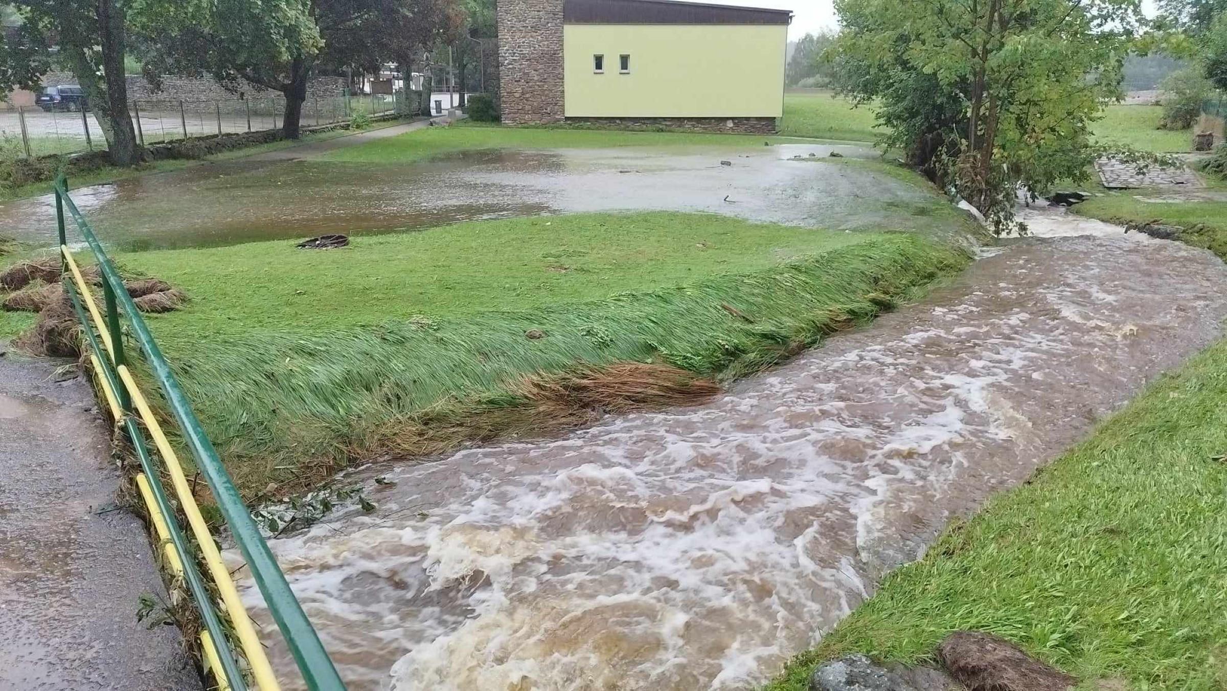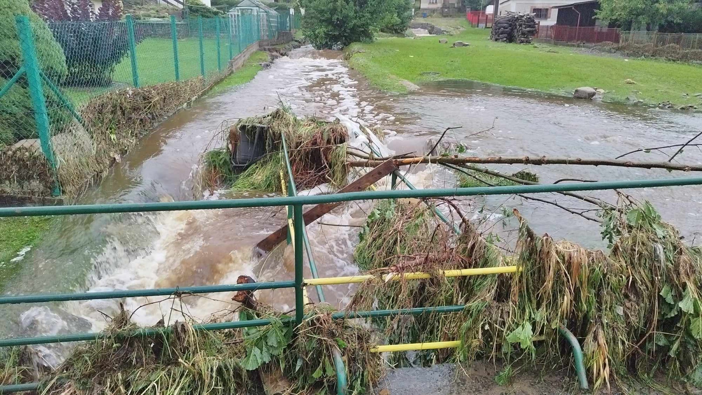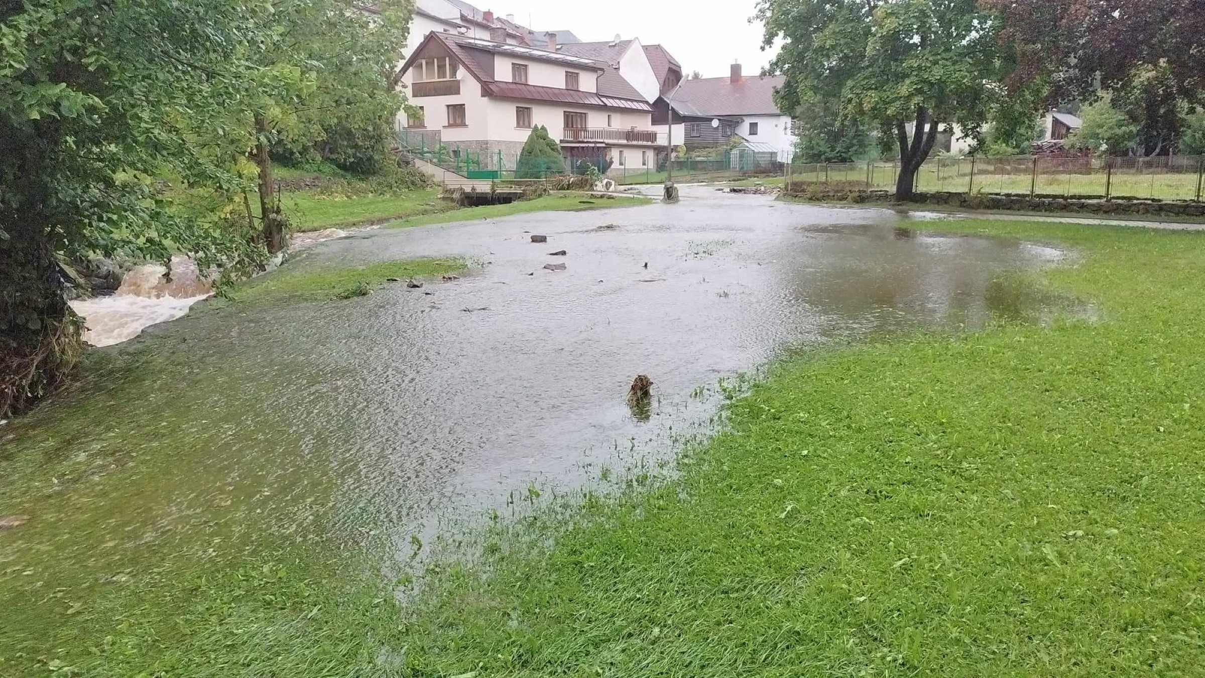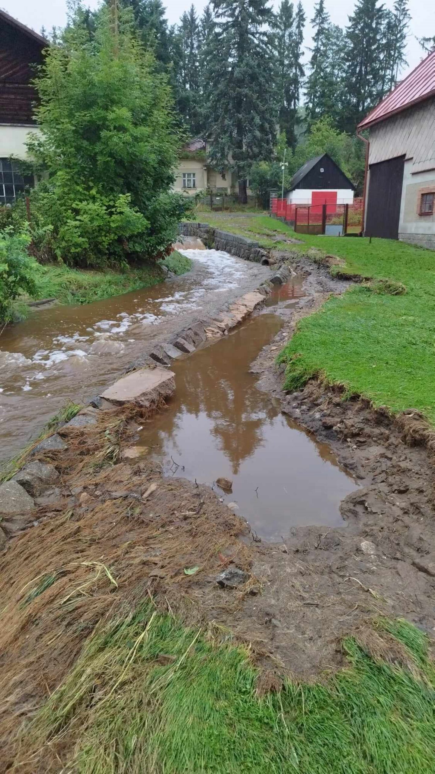 Přívalová povodeň v obci Stachy, srážky přes 100 mm