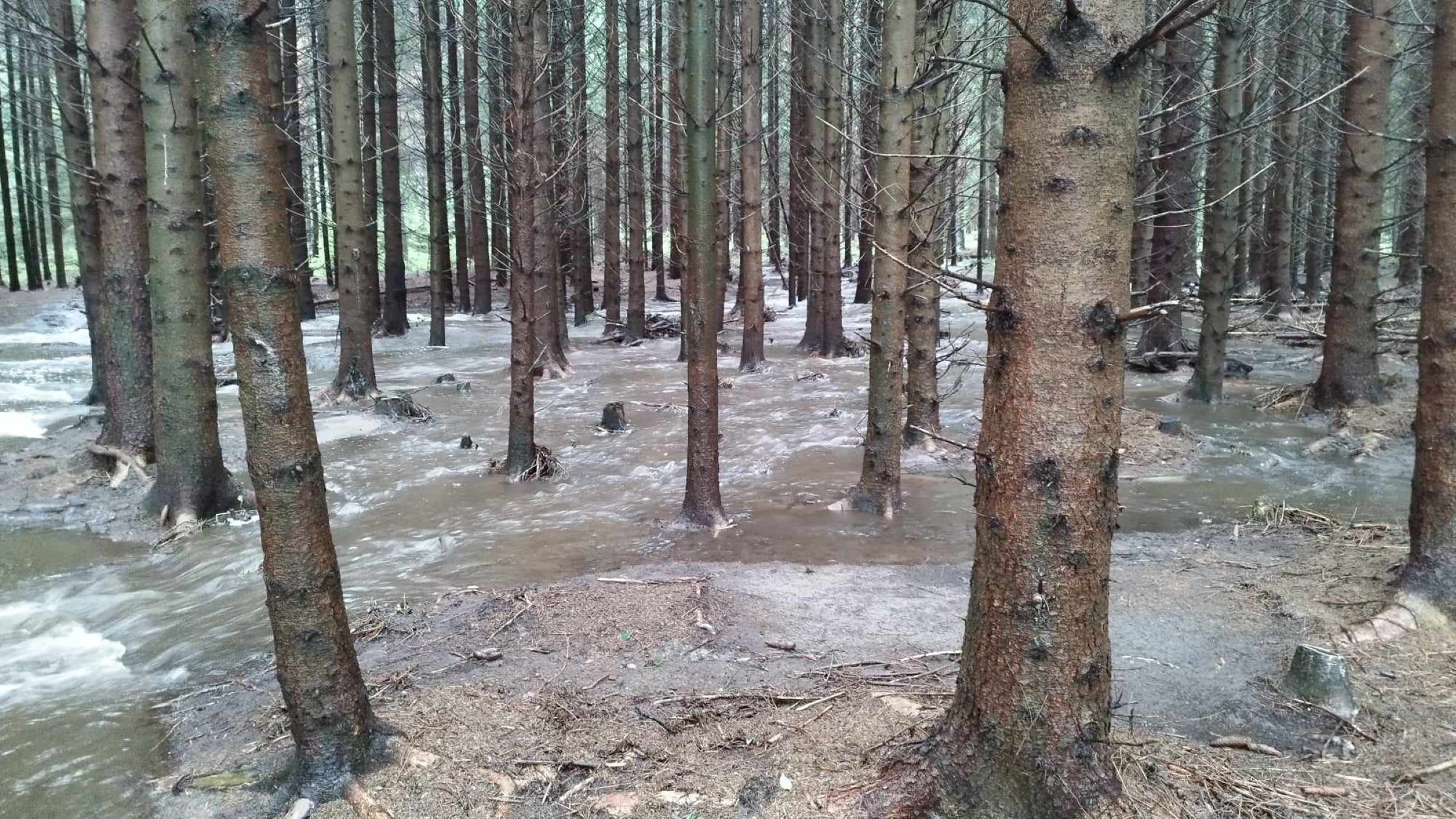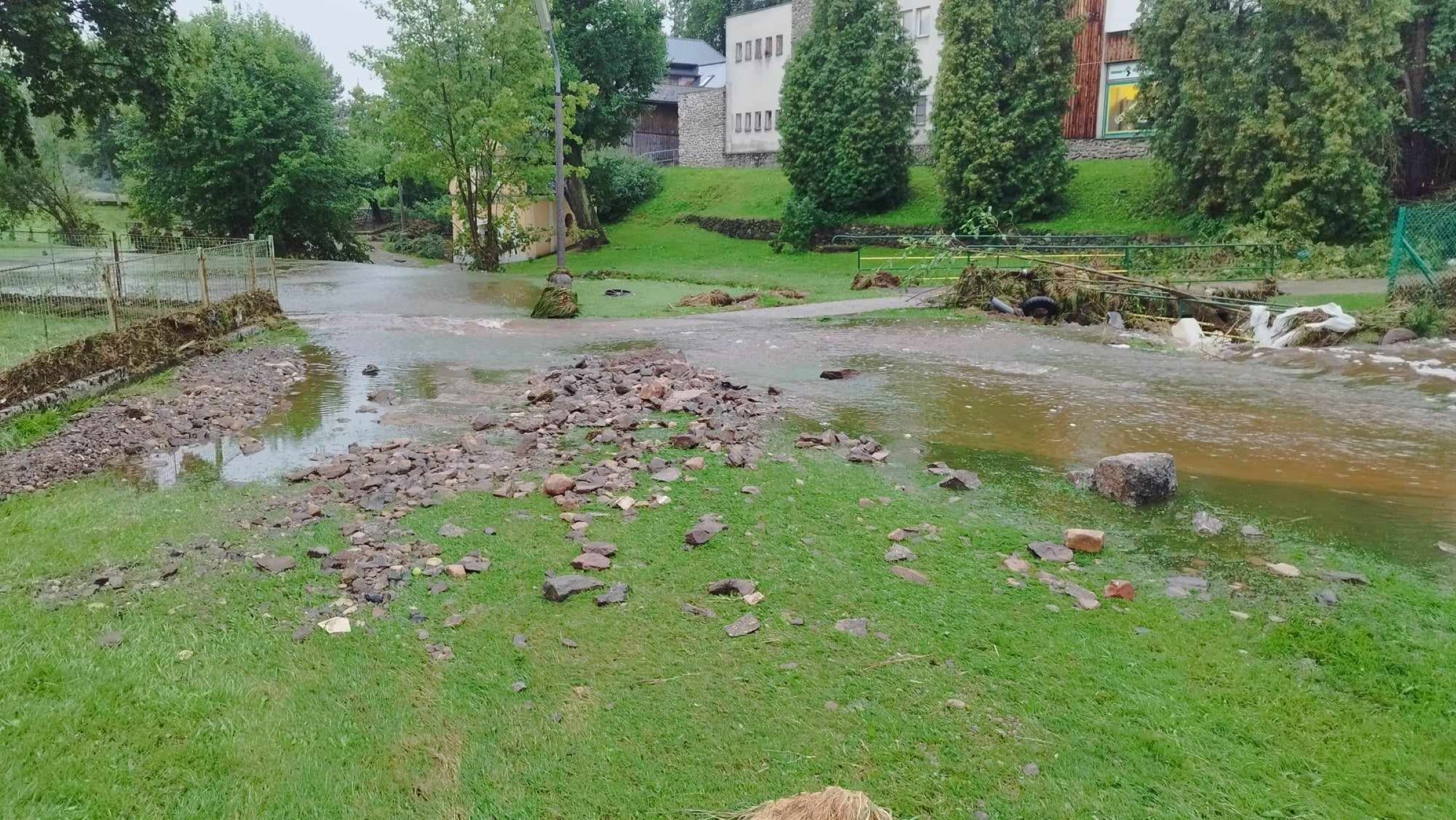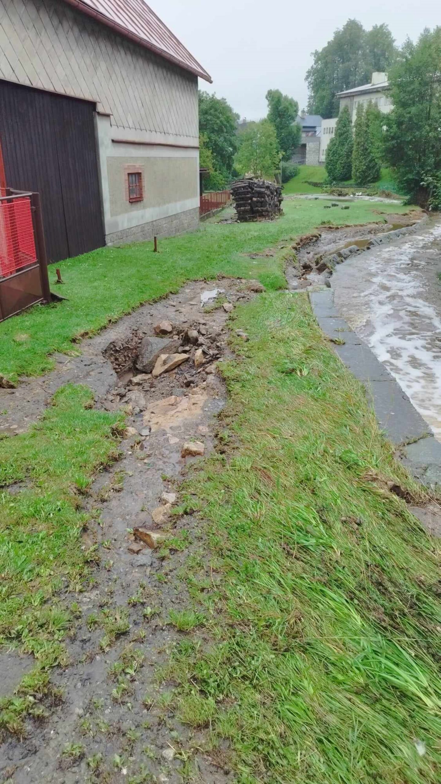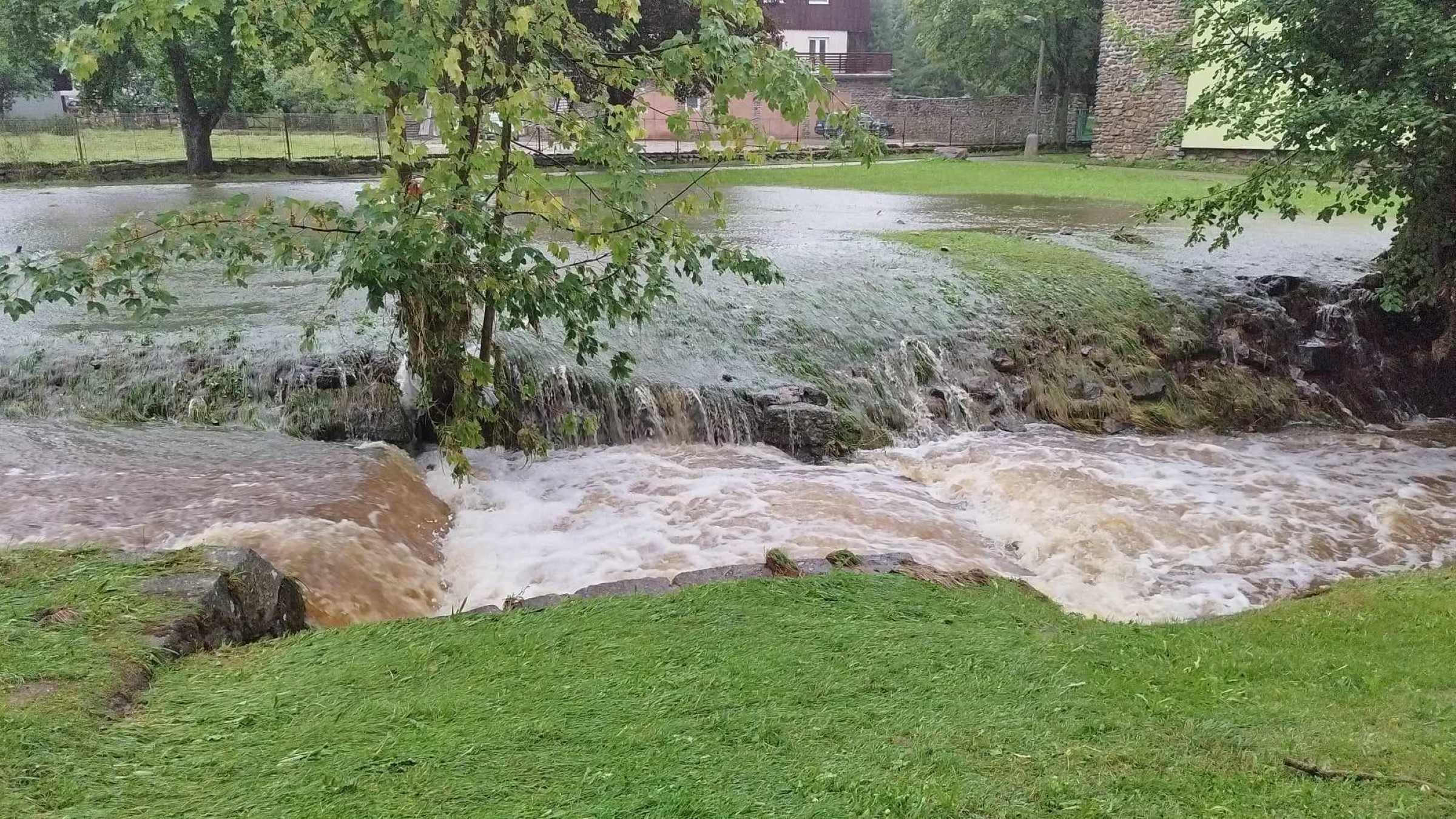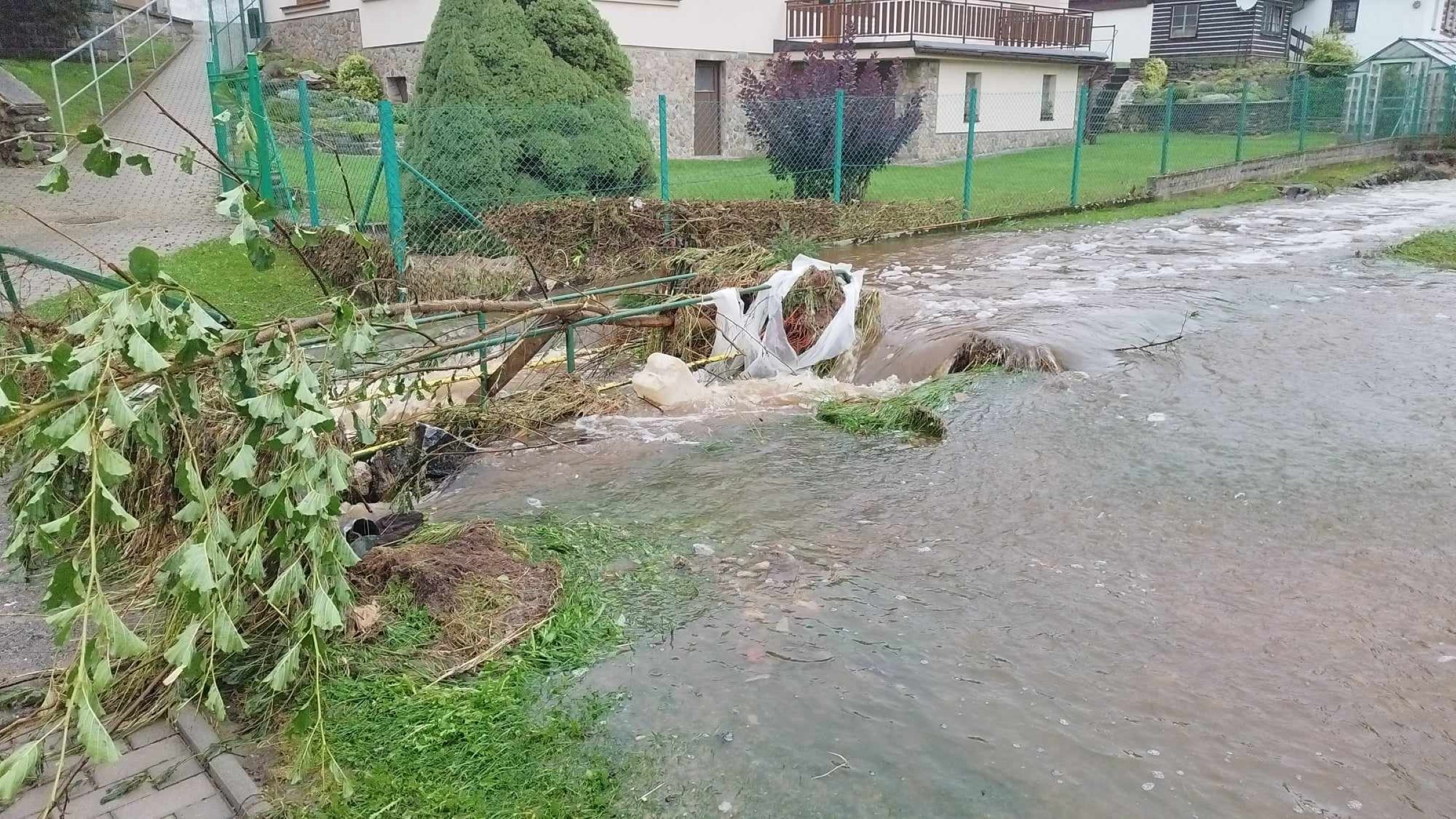 Přívalová povodeň v obci Stachy, srážky přes 100 mm
