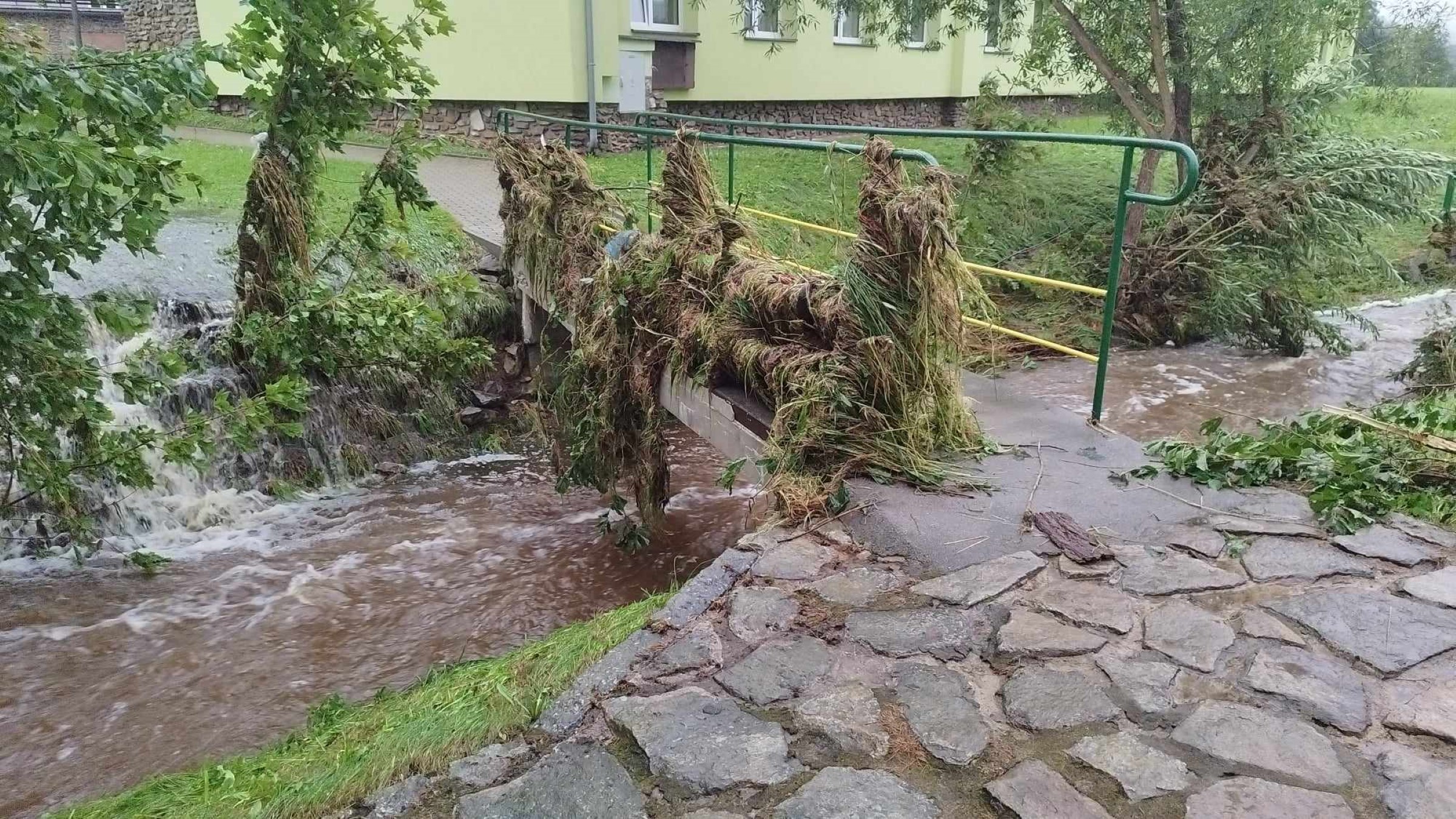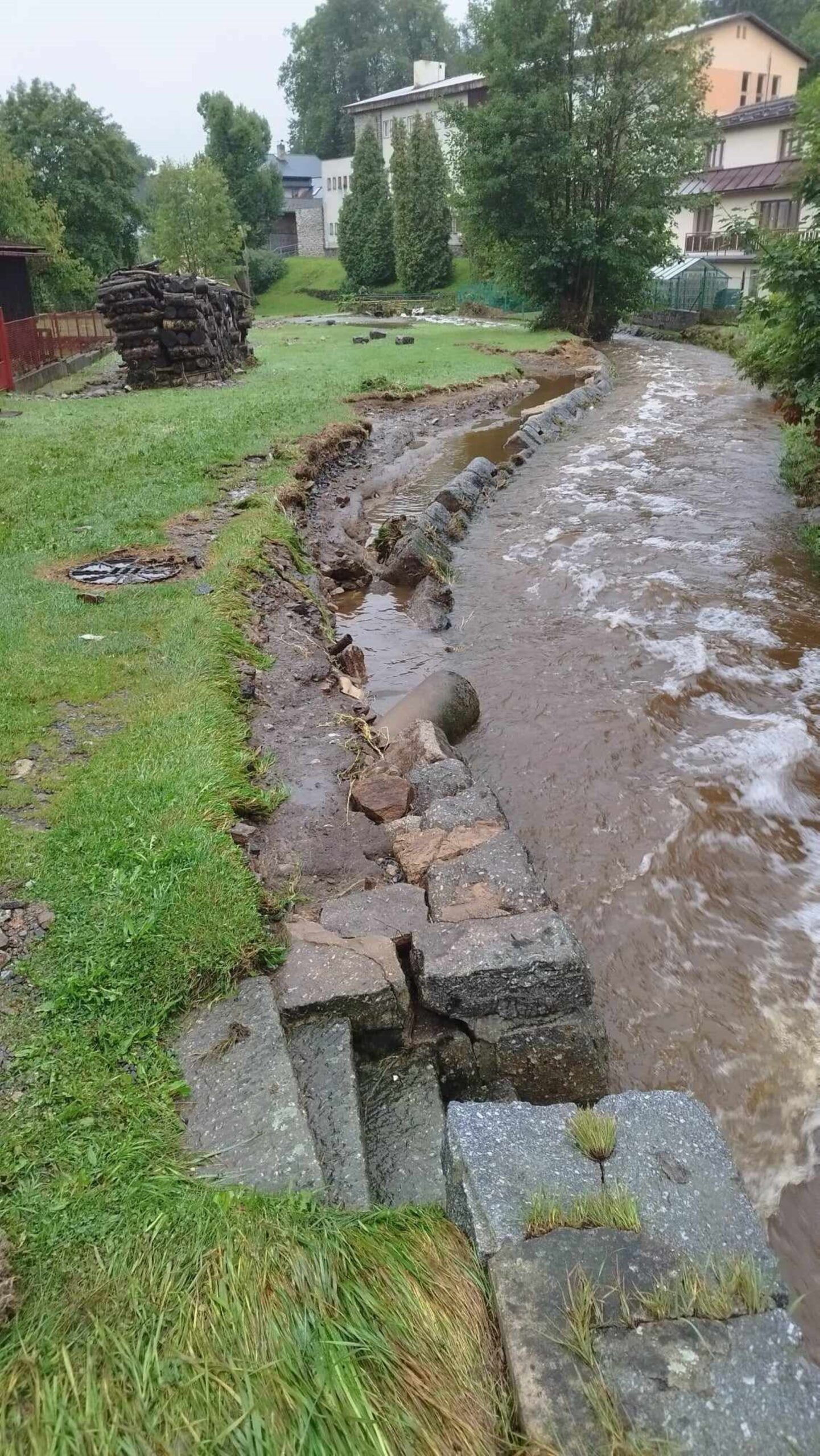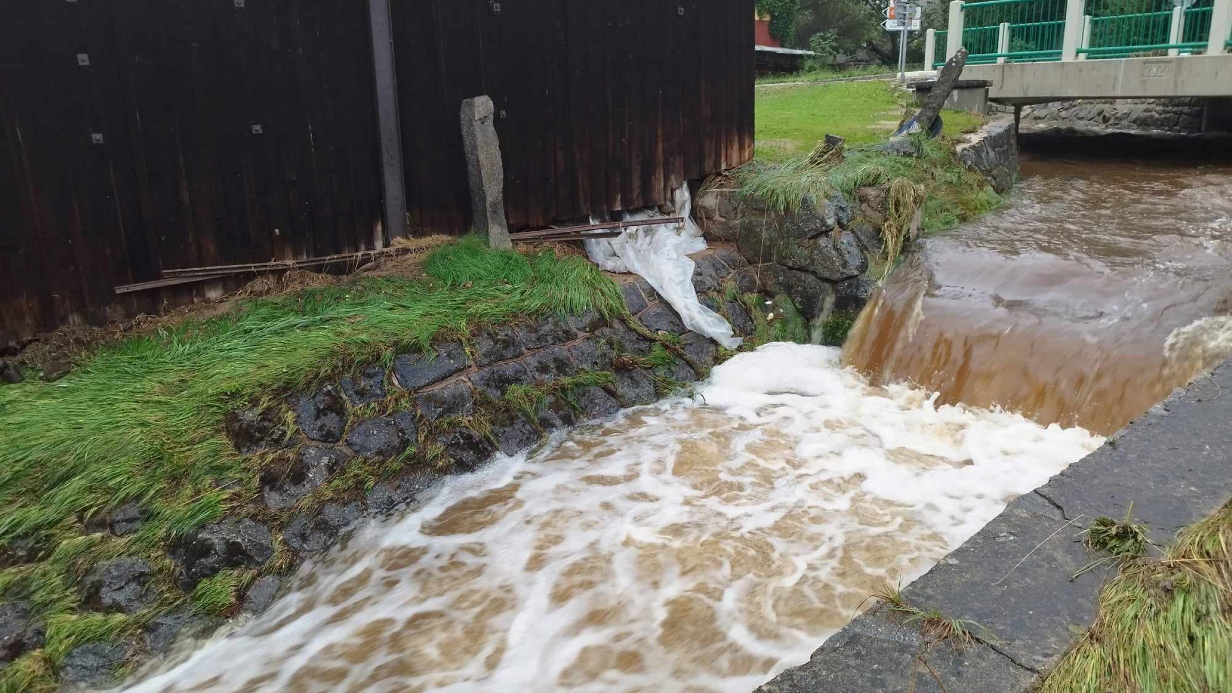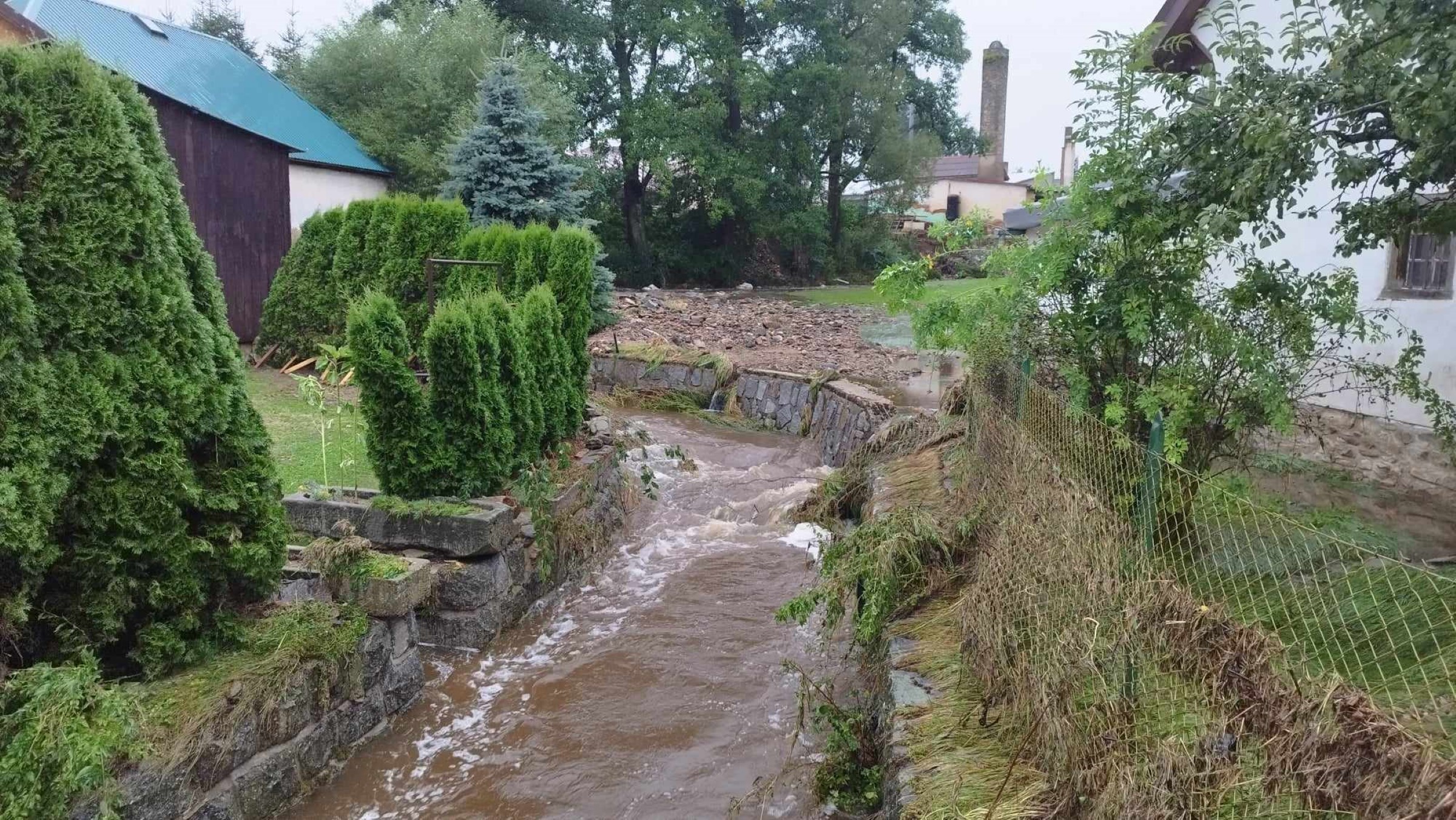 Přívalová povodeň v obci Stachy, srážky přes 100 mm
