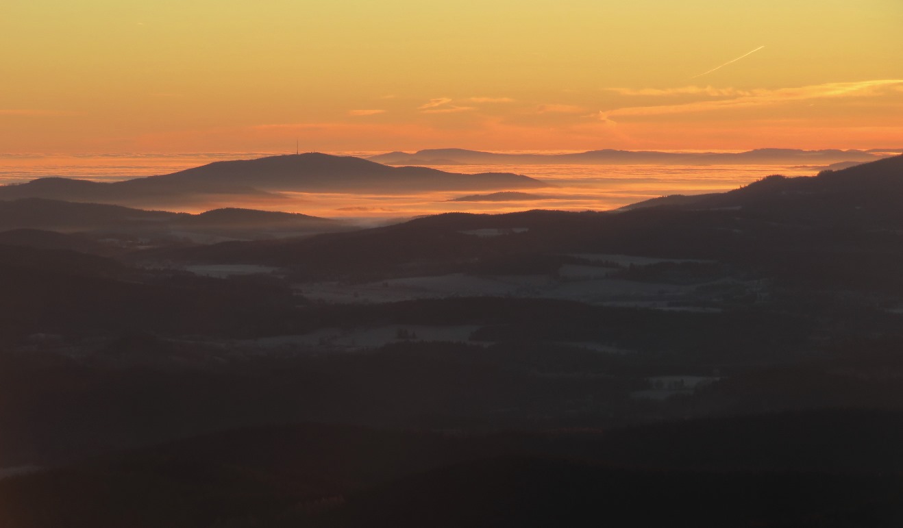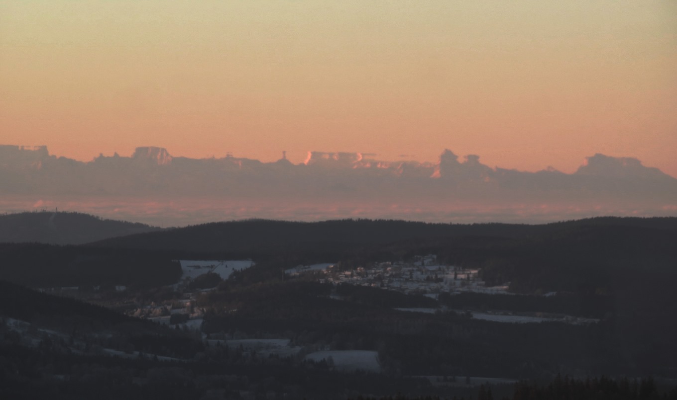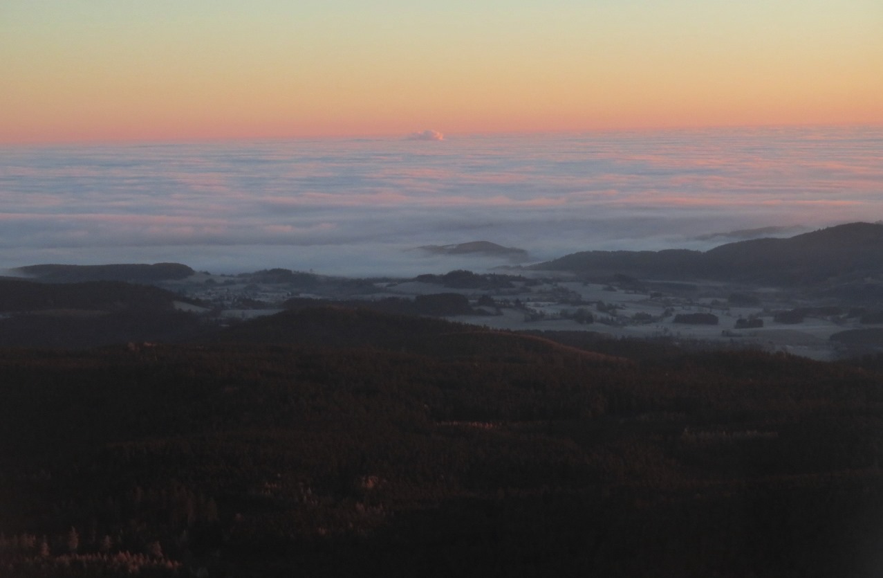 I velmi omezené sněhové podmínky začátku zimy na Šumavě neodradily některé nadšence od skluzu na prkýnkách, kde zejména na zastíněných úsecích výše položených lyžařských tras to obstojně lze. Ovšem především přes den teplé a slunečné počasí poskytovalo výborné podmínky pro horské túry s dalekými výhledy až k Alpám. Na Boubíně jsme například v neděli ráno takto zaznamenali i svrchní zrcadlení některých alpských vrcholů. Začátek zimy se sice na Šumavě vyvedl více počasově než sněhově, ale to by se mohlo v příštích dnech výrazněji změnit.