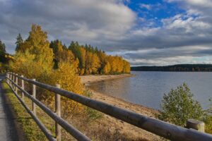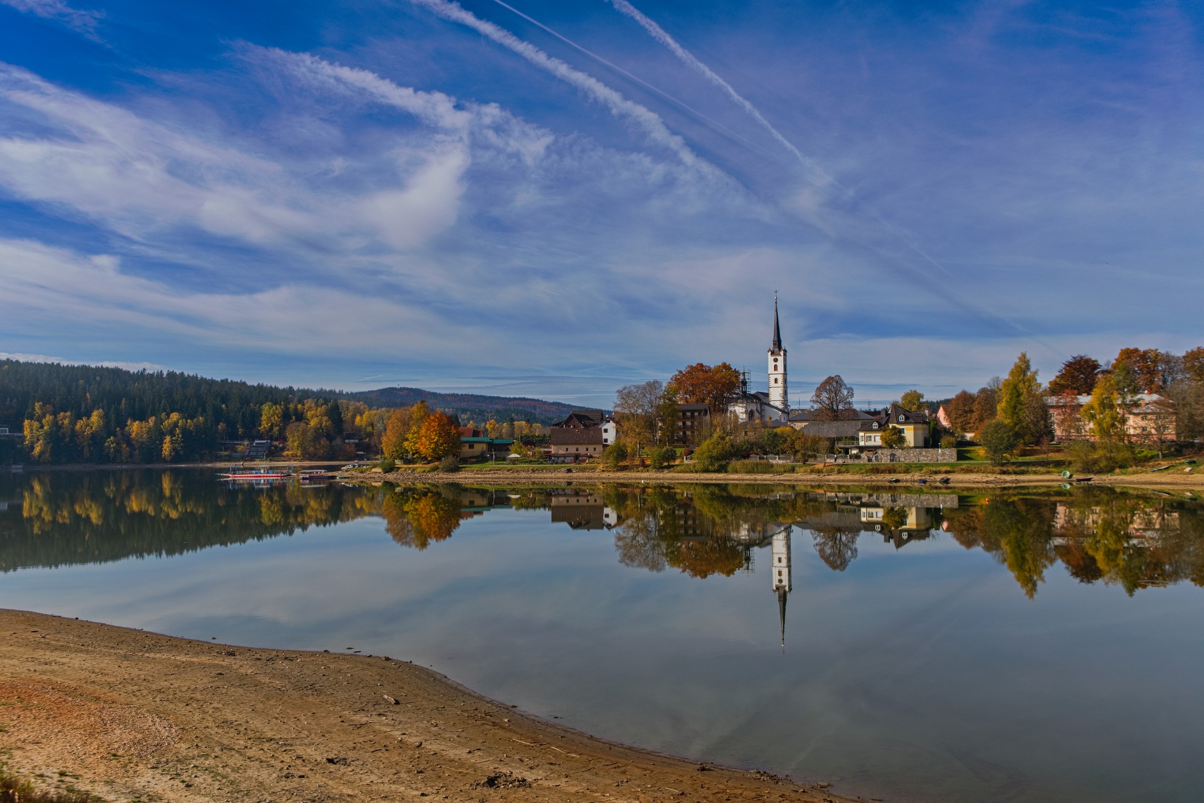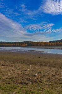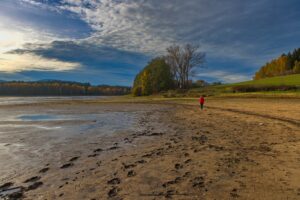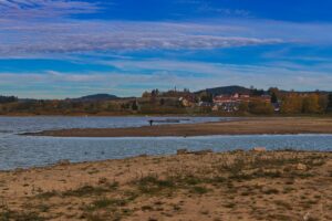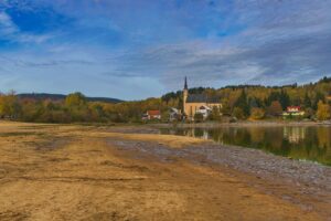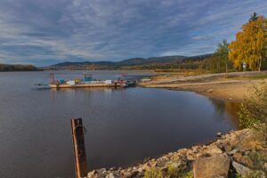 Hladina vody v přehradní nádrži Lipno od jara prakticky nepřetržitě klesá. Za poklesem stojí kombinace meteorologických a vodohospodářských faktorů. Meteorologické příčiny spočívají jednak ve sněhově výjimečně chudé zimě a jednak v letošních podprůměrných srážkách. Zima se zejména ve své druhé polovině vyznačovala nejen v povodí Lipna, ale i na celé Šumavě, velmi nízkou a často jen nesouvislou sněhovou pokrývkou se slabou zásobou vody (hodnotili jsme v článku Sníh na Šumavě v zimní sezoně 2024/2025). Ze sněhu tedy moc vody pro průběžné doplňování vody do přehrady nezbylo. Celkové úhrny srážek se již v polovině ledna dostaly pod dlouhodobý průměr a pokračující trend vyústil v rekordně suchý půlrok (nejsušší půlrok od 60. let). Situaci se v tomto směru moc nezlepšila ani přes srážkově normální červenec a nadnormální září. Z vodohospodářského hlediska přispěla k poklesu hladiny Lipna povinnost vypouštět z přehrady 6 kubíků (m3) vody za sekundu, zatímco přítok často dosahoval jen 2 kubíků. Výsledkem tak v tomto případě bývá deficit kolem 4 tis. litrů každou sekundu, a to bez započítání výparu z vodní plochy o rozloze přes 4 500 hektarů..