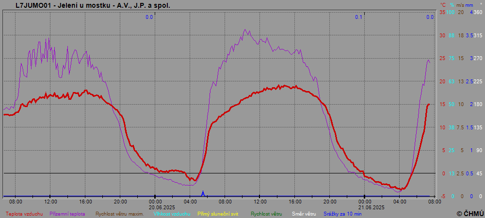 Klimatologické léto vstupuje do své již třetí dekády z celkových devíti, ale to astronomické začíná právě až dnes, konkrétně 21. června 2025 ve 4 hodiny 43 minut našeho středoevropského letního času. Slunce dosáhlo z našeho pohledu své nejsevernější dráhy, zažijeme nejdelší den v roce a další dny se budou až do 21. prosince opět jenom zkracovat (podrobněji na webu Astronomického ústavu AV ČR: Nastane letní slunovrat a začne astronomické léto) Tzv. letní slunovrat je dnes o něco zajímavější tím, že se na více horských lokalitách vyskytl mráz neboli mrazový den. V tomto spojení tak dnes v podstatě zažíváme mrazový letní slunovrat.