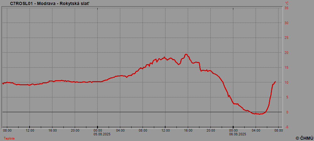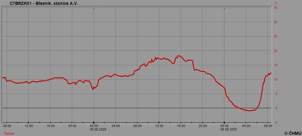 První srpnový mráz na grafech stanic Březník a Rokytská slať (zdroj: ČHMÚ)